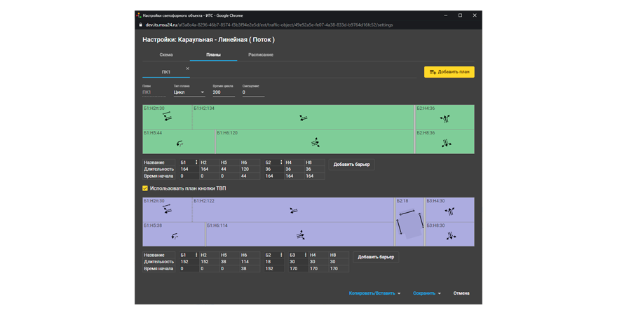 • Удалённое управление работой СО, смена фаз СО, создание и редактирования планов координации, расписаний работы СО и загрузка в дорожные контроллеры управляющих программ.