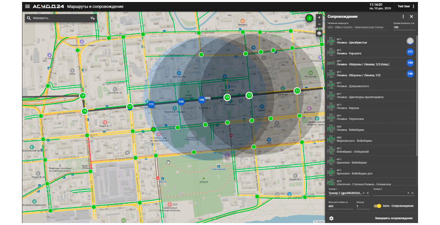 • Мониторинг движения транспорта по маршруту (при наличии оборудования на транспорте)