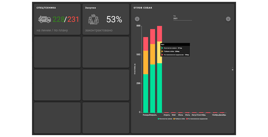 • Информация о ходе выполнения контрактов в виде графиков и диаграмм